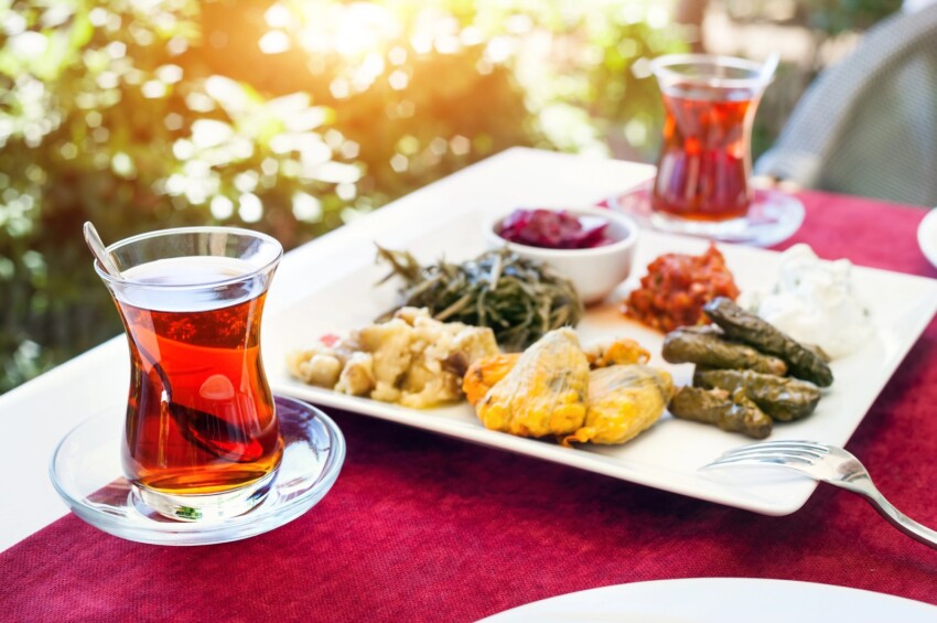 La bevanda nazionale della Turchia non è il caffè, ma il çay, il tè nero forte servito nei caratteristici bicchieri a forma di tulipano. Viene coltivato lungo la costa del Mar Nero e preparato in una teiera speciale a due piani (çaydanlık). I turchi lo bevono tutto il giorno, offrirlo a un ospite è un gesto di ospitalità fondamentale.